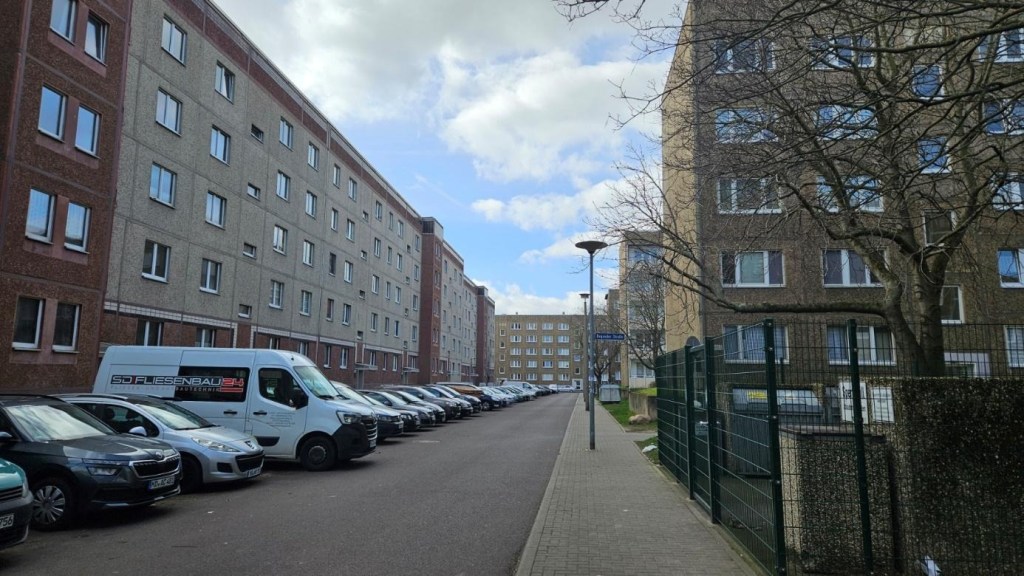 Figure 5: The view between houses, contrasting living realities in Magdeburg Neue Neustadt, 2024
