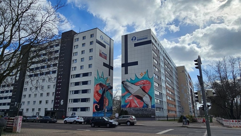 Figure 2: Houses can talk. Older Plattenbau estate, partly Social Housing, Magdeburg Neue Neustadt, 2024